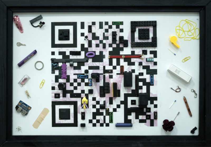 sus zonas negras, intervenidas con restos tecnológicos y fragmentos de objetos usados,