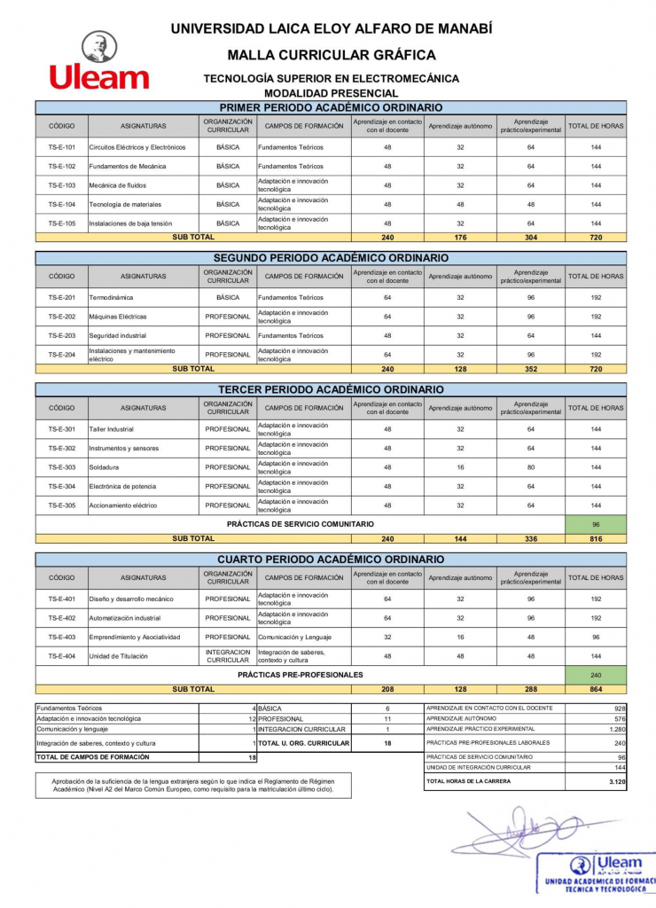 Nombre de la Carrera: TECNOLOGÍA SUPERIOR EN ELECTROMECÁNICA